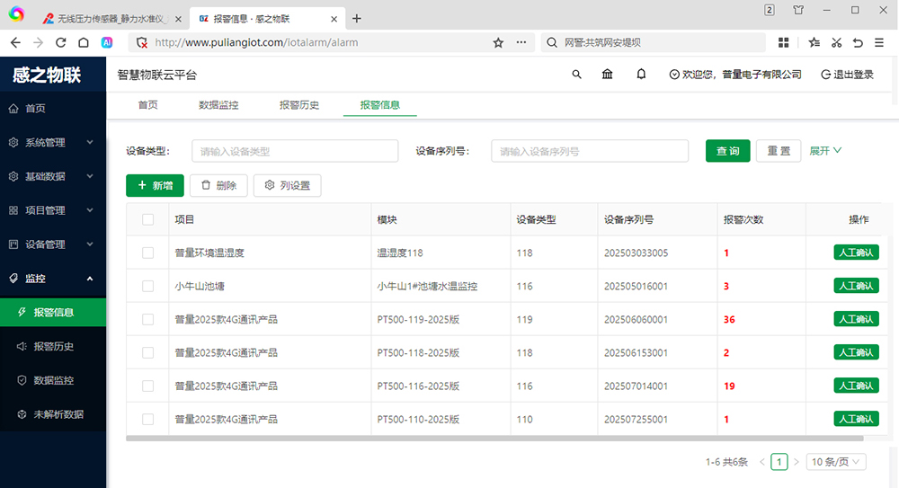 五、CO2 二氧化碳滅火器重量監(jiān)控儀 PT500-110 感之物聯(lián)云監(jiān)控平臺(tái):